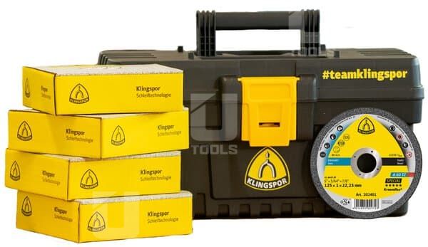 V súprave získate jedno balenie rezných kotúčov zdarma a navyše získate aj odolný kufrík Klingspor na náradie ako darček. Tieto profesionálne kotúče A 60 TZ Special sú určené pre rýchly, presný a bezpečný rez bez kontaminácie rezaného materiálu.