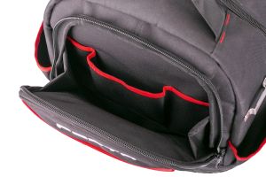 Batoh na náradie s dvomi hlavnými oddielmi a až 20 praktickými vreckami umožňuje prehľadné uloženie náradia a rýchly prístup ku všetkému potrebnému počas práce.