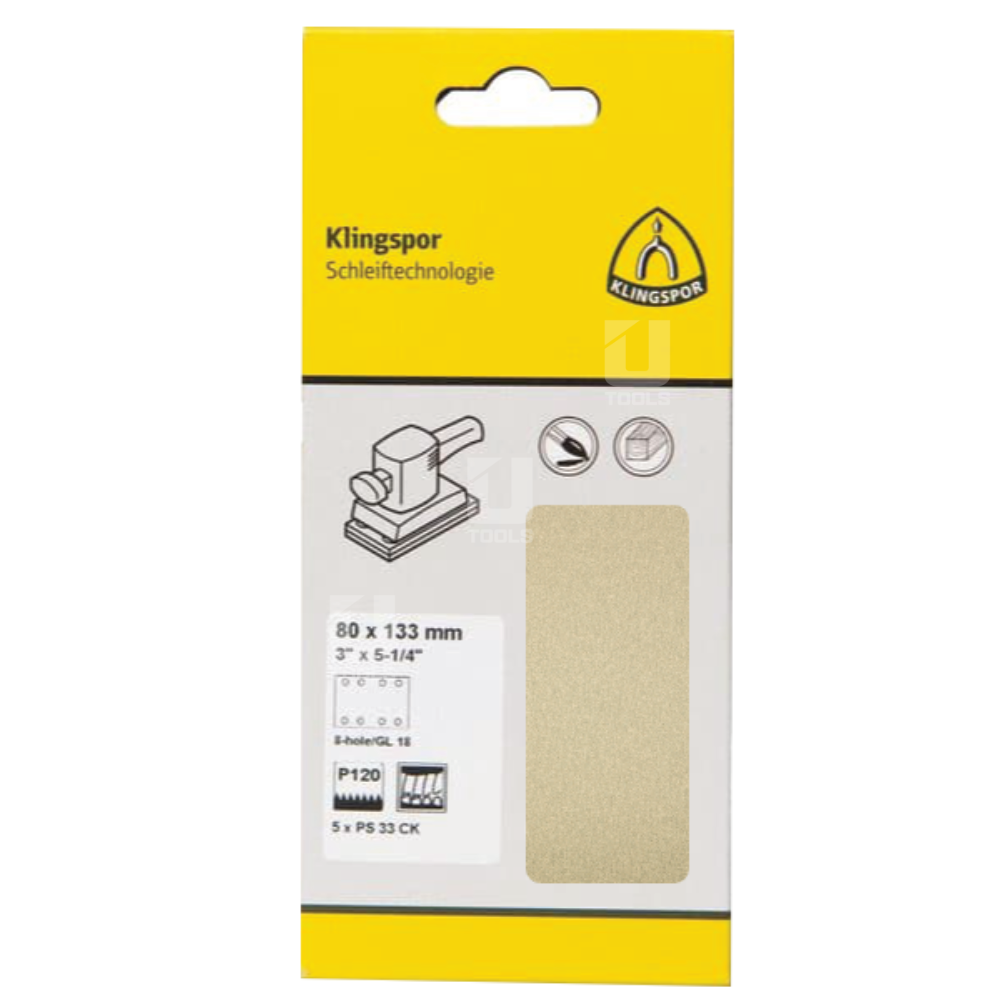 - Brúsny pásik na zips PS 33 CK, 93×178 mm, P120, dierovaný D8, GL17, 5 ks blister