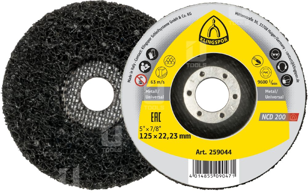 Čistiaci kotúč NCD200 je ideálnym doplnkom uhlovej brúsky pre odstraňovanie tepelného zafarbenia a čistenie povrchov. Skladá sa zo špeciálnej netkanej čistiacej siete SiC, ktorá sa vďaka svojej otvorenej štruktúre nezanáša. Spoločnosť Klingspor používa na lepenie syntetickú živicu, pretože tento materiál podporuje pozitívne vlastnosti zrna SiC. Čistiaci kotúč NCD200 je vynikajúcou voľbou pre prácu na povrchoch