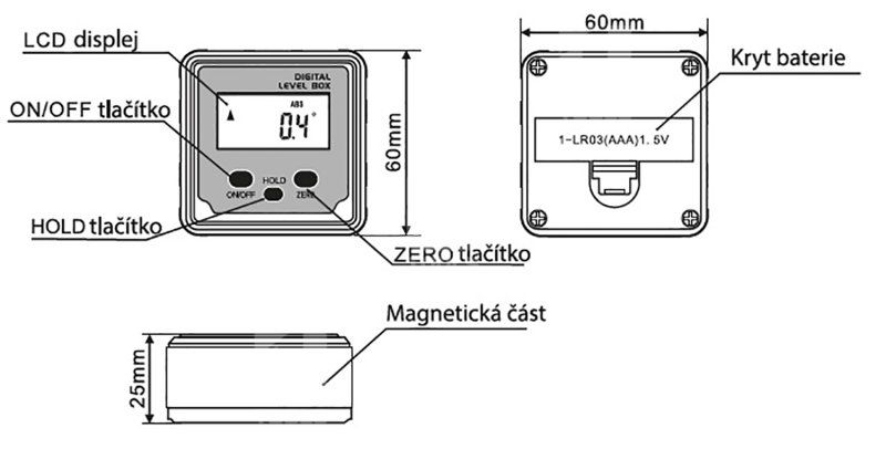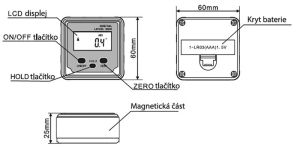 - Digitálny sklonomer, magnetický, 2×180°