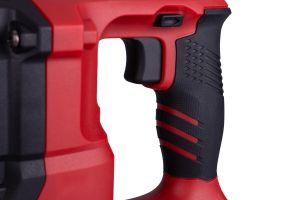 Pogumovaná ergonomická rukoväť dobre sedí v ruke a ovládacie prvky sú umiestnené tak, aby vyhovovali pravákom aj ľavákom, čo zvyšuje komfort a bezpečnosť pri práci.