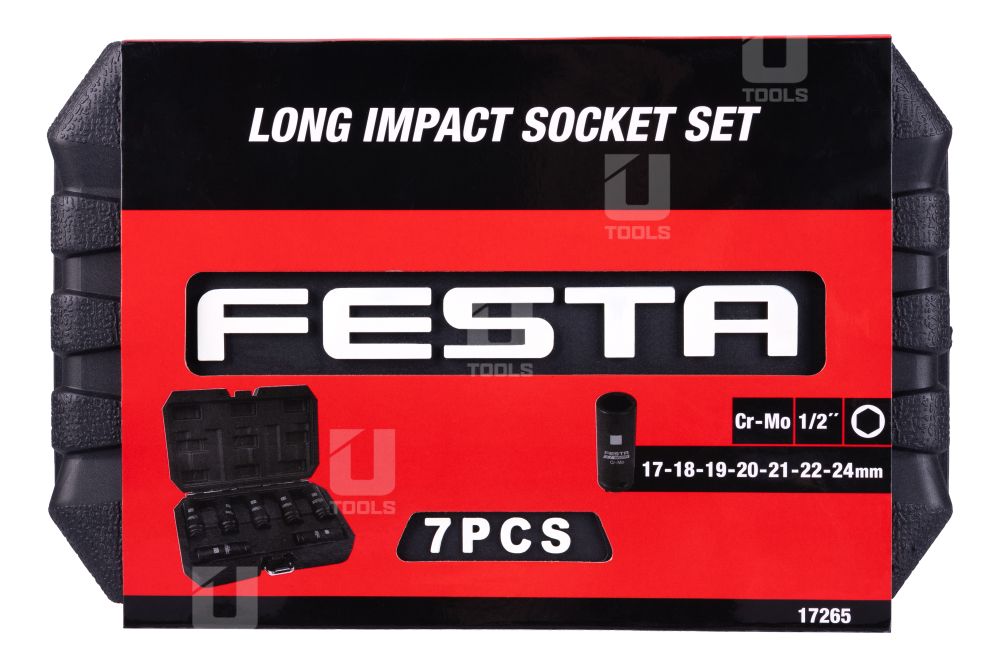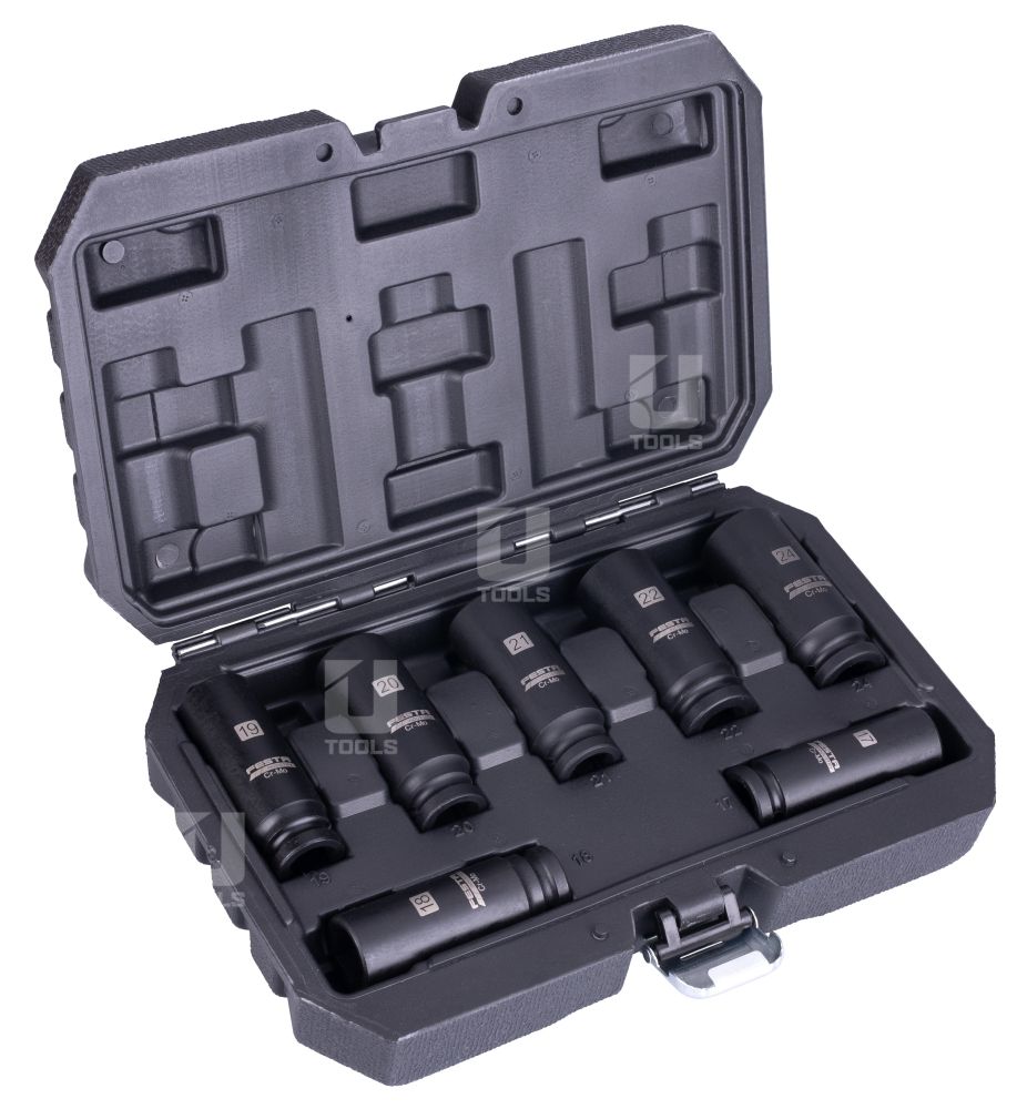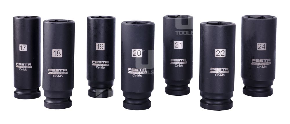 Hlavice sú predĺžené s výškou 80 mm pre lepší prístup k hlboko uloženým skrutkám a maticiam. Súprava je kompatibilná s väčšinou AKU, elektrických aj pneumatických rázových utahovákov – ideálna pre profesionálov aj domácich majstrov.