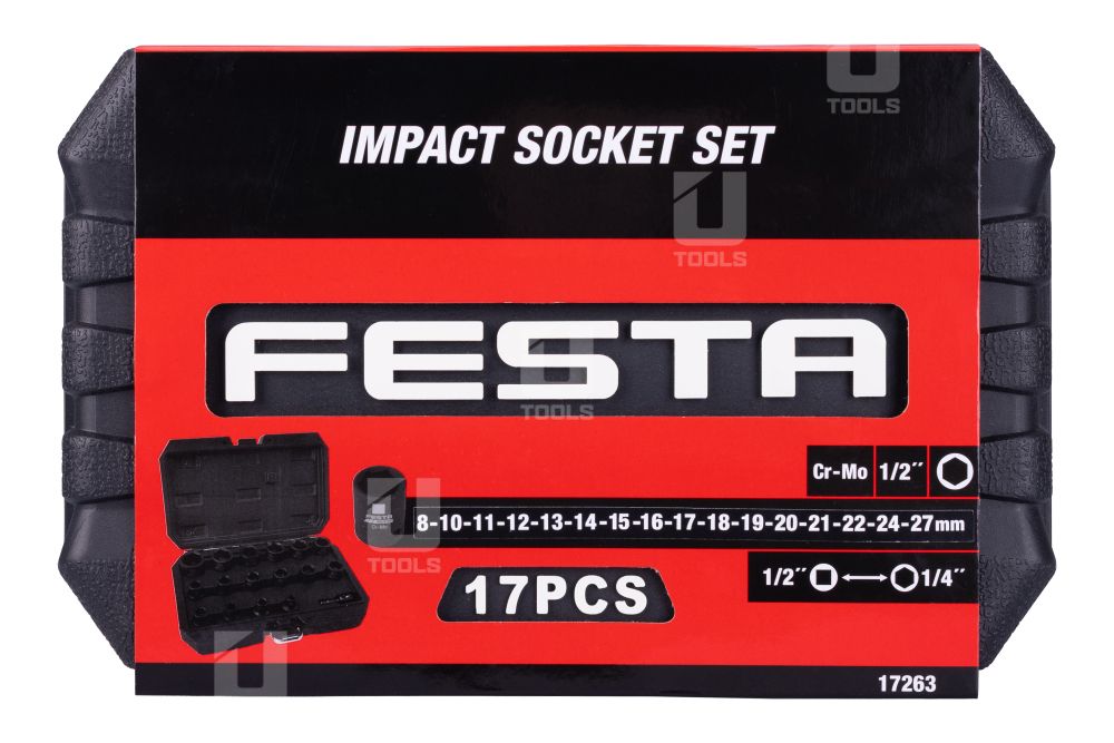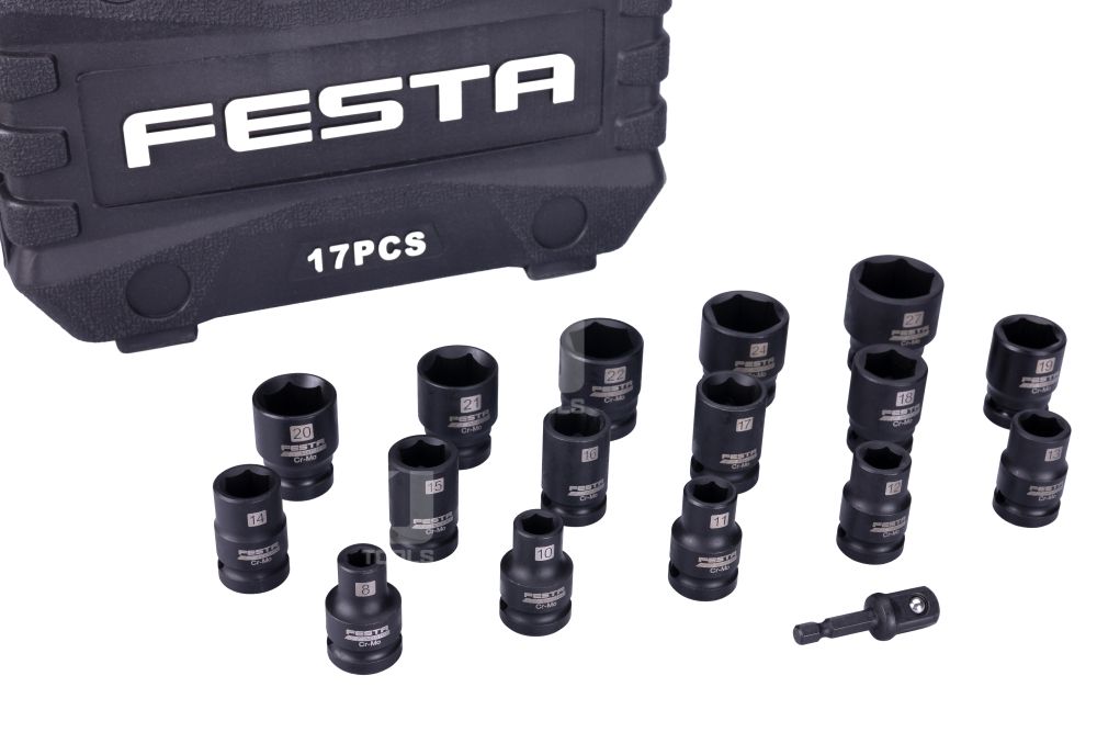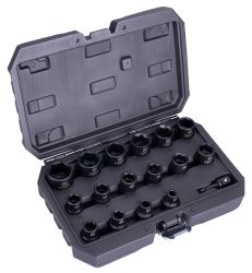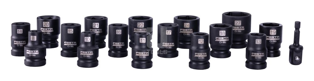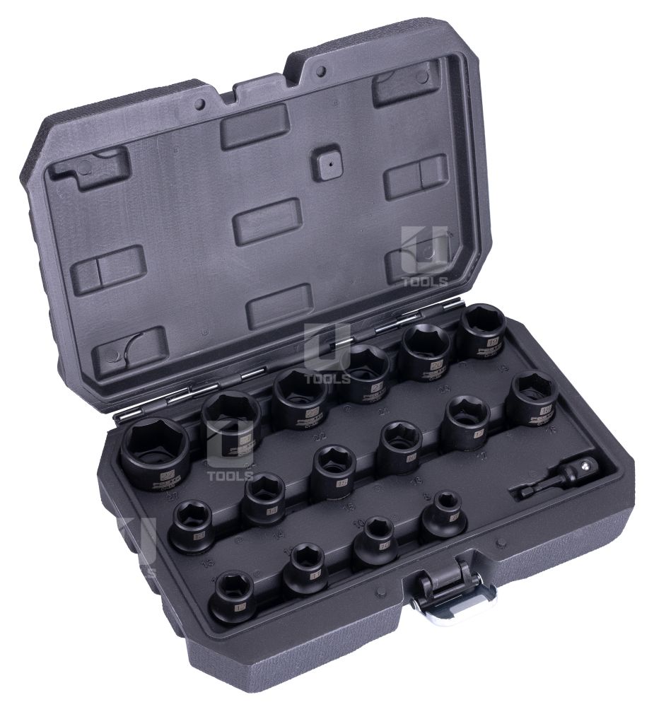 Veľký výber priemerov umožňuje flexibilné použitie pre rôzne typy skrutiek a matíc. Súčasťou je adaptér zo šesťhranu 1/4" na štvorhran 1/2", vďaka čomu je sada kompatibilná s väčšinou AKU, elektrických aj pneumatických rázových utahovákov – ideálna pre profesionálov aj domácich majstrov.