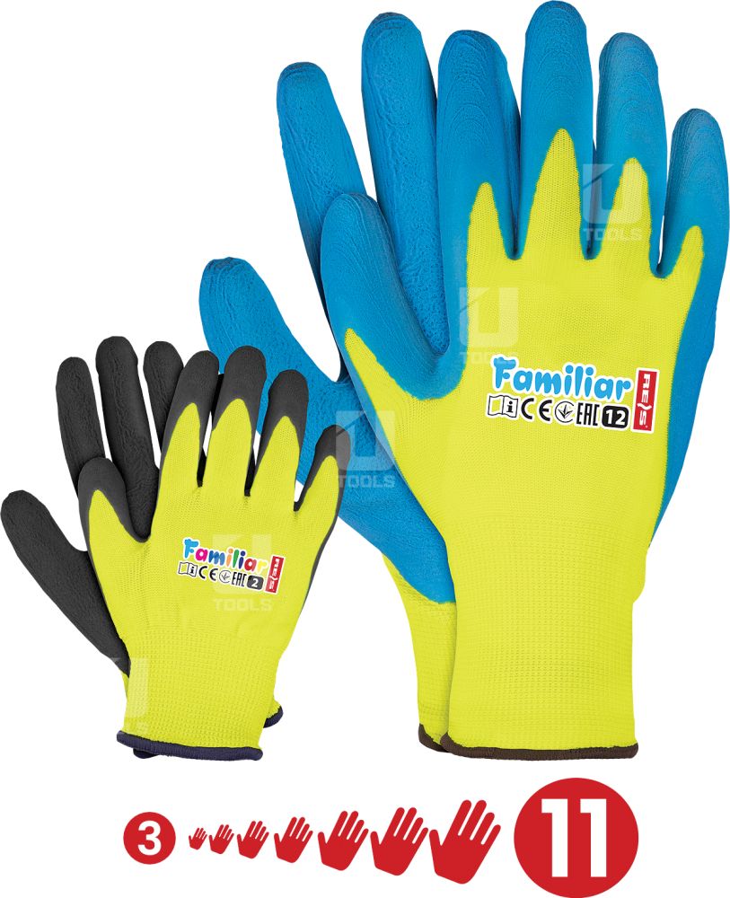 Vyrobené z jemnej polyesterovej pleteniny, ktorá je pružná a pohodlná na nosenie. Dlaň je potiahnutá penovým latexom FOAM – mäkké povrstvenie znižuje tvorbu otlakov, zvyšuje komfort a neobmedzuje pohyblivosť ruky. Štruktúra latexu zlepšuje úchop aj pri hladkých predmetoch a zároveň ponecháva rukavicu mäkkú a flexibilnú. Zakončené elastickým sťahovacím lemom pre stabilné držanie.