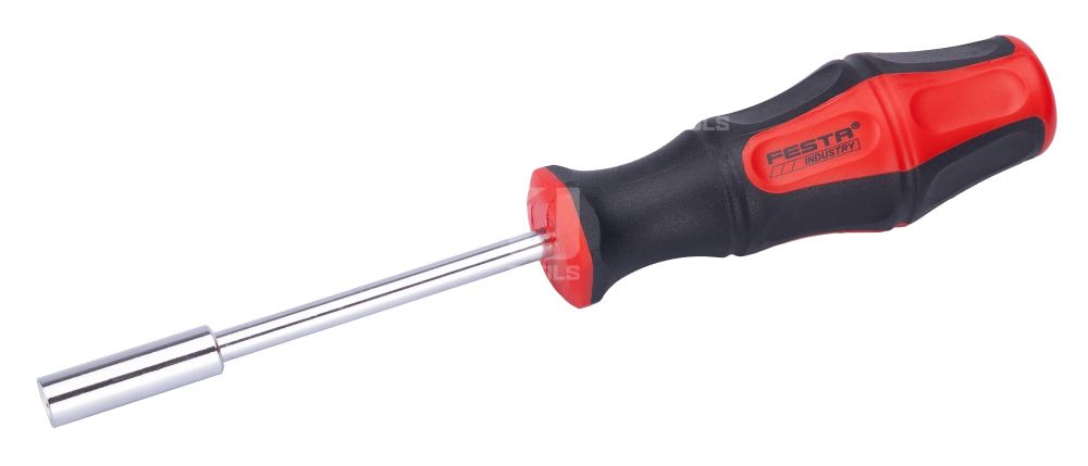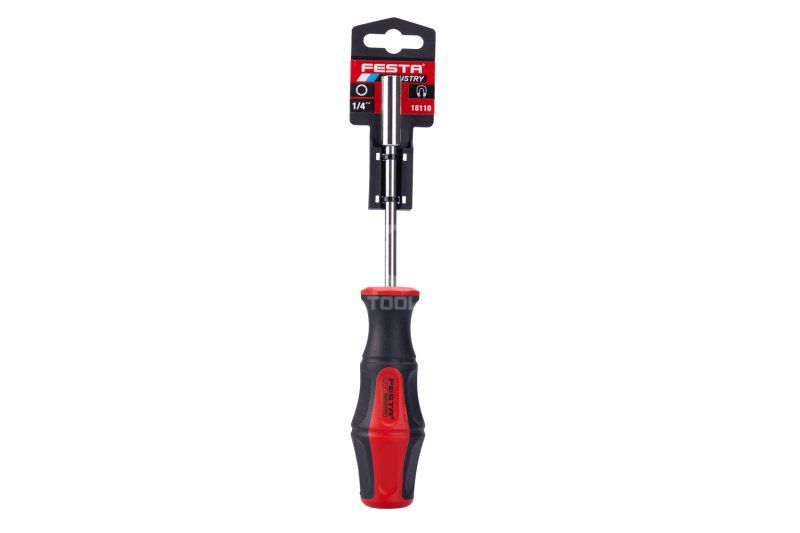- nástavcový skrutkovač s driekom z kvalitnej CrV ocele ukončeným šesťhranom 1/4" na bity
